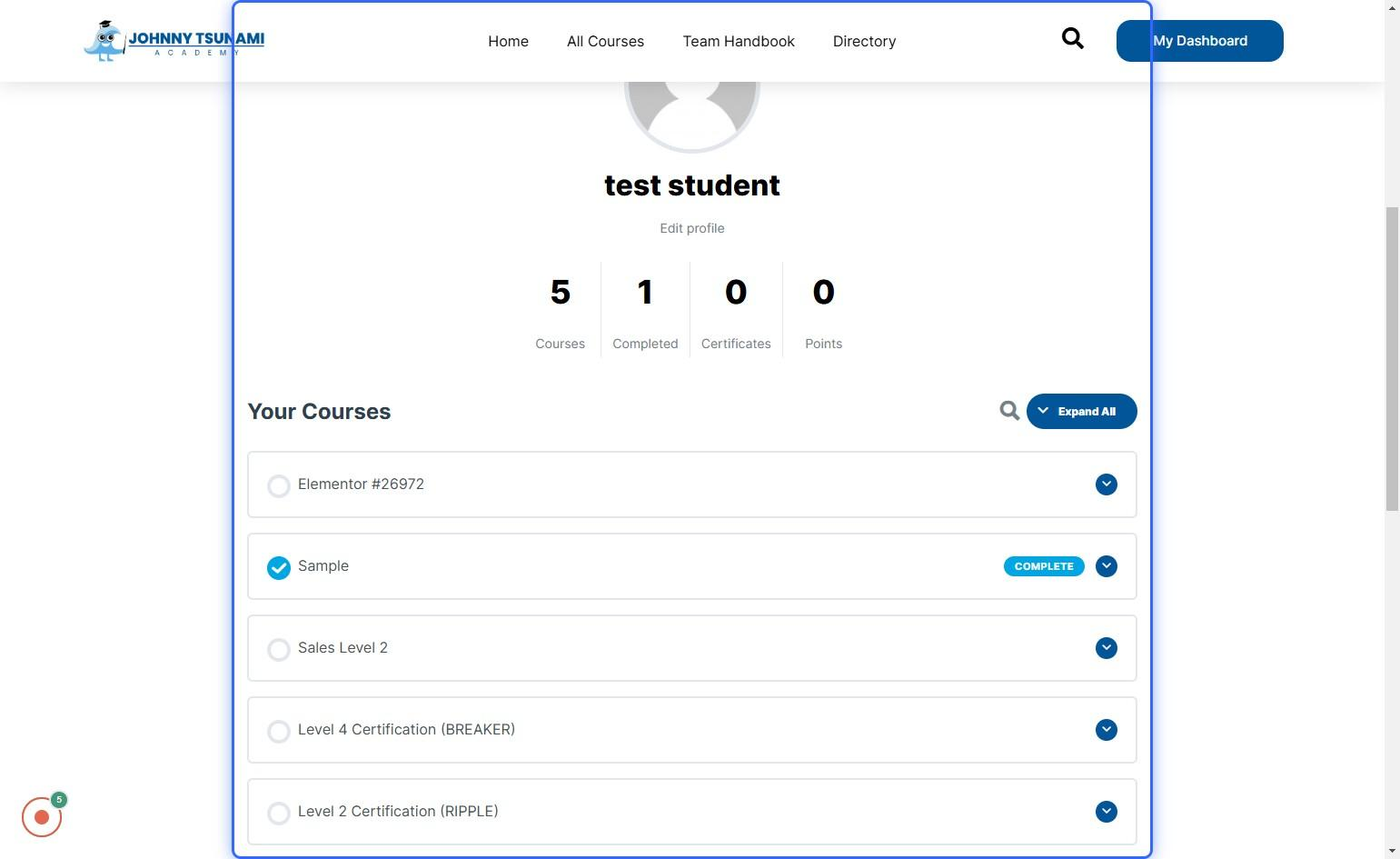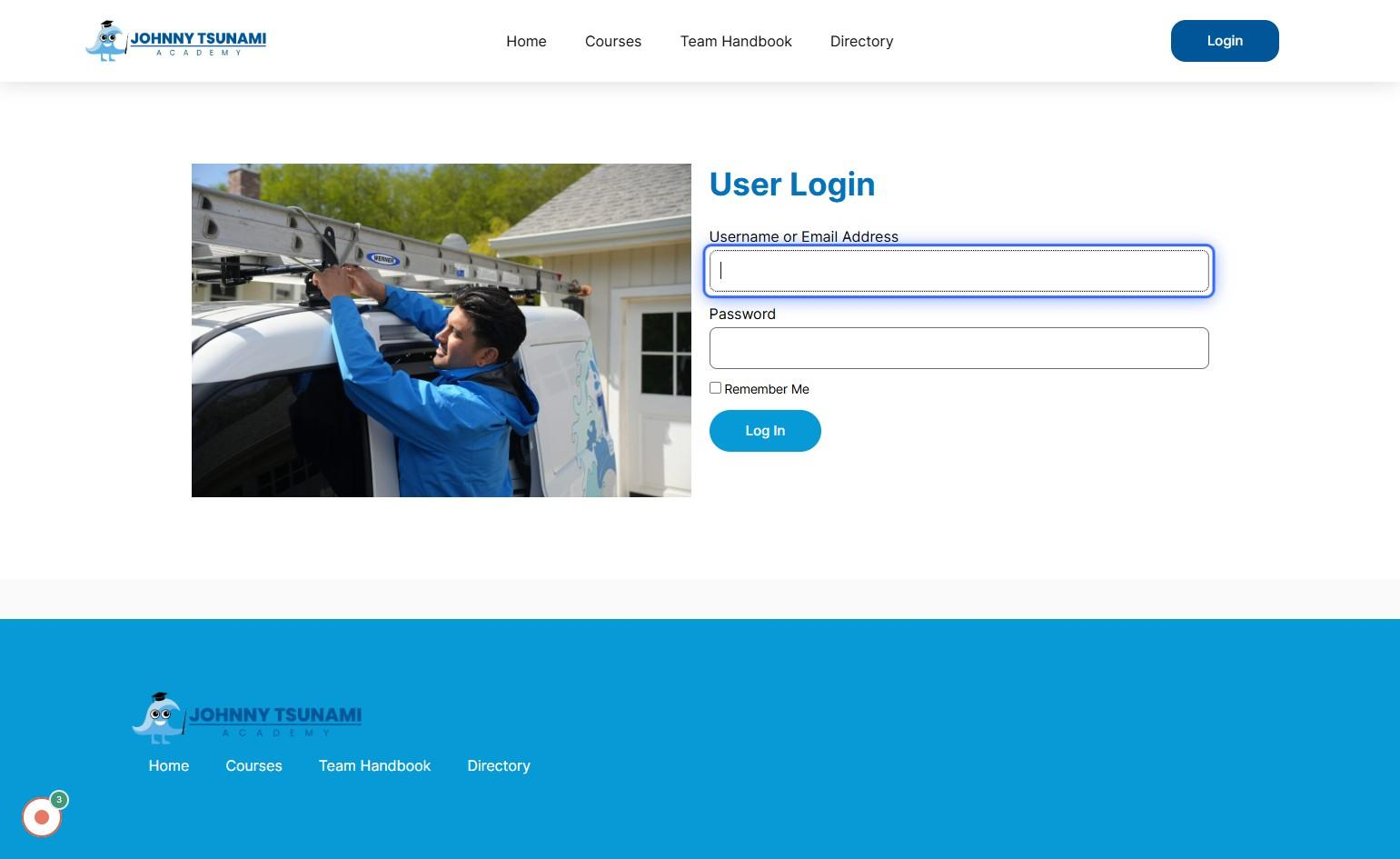 How to access courses Go to Johnny Tsunami Academy Click on ‘User’ or ‘Email Address’ and input your given login details. Click on ‘Password’ and input your given login details. Click the Login to Proceed Once you log in, you will be redirected to your dashboard page. Here, you can see a list of courses you belong to and the courses you have completed.
