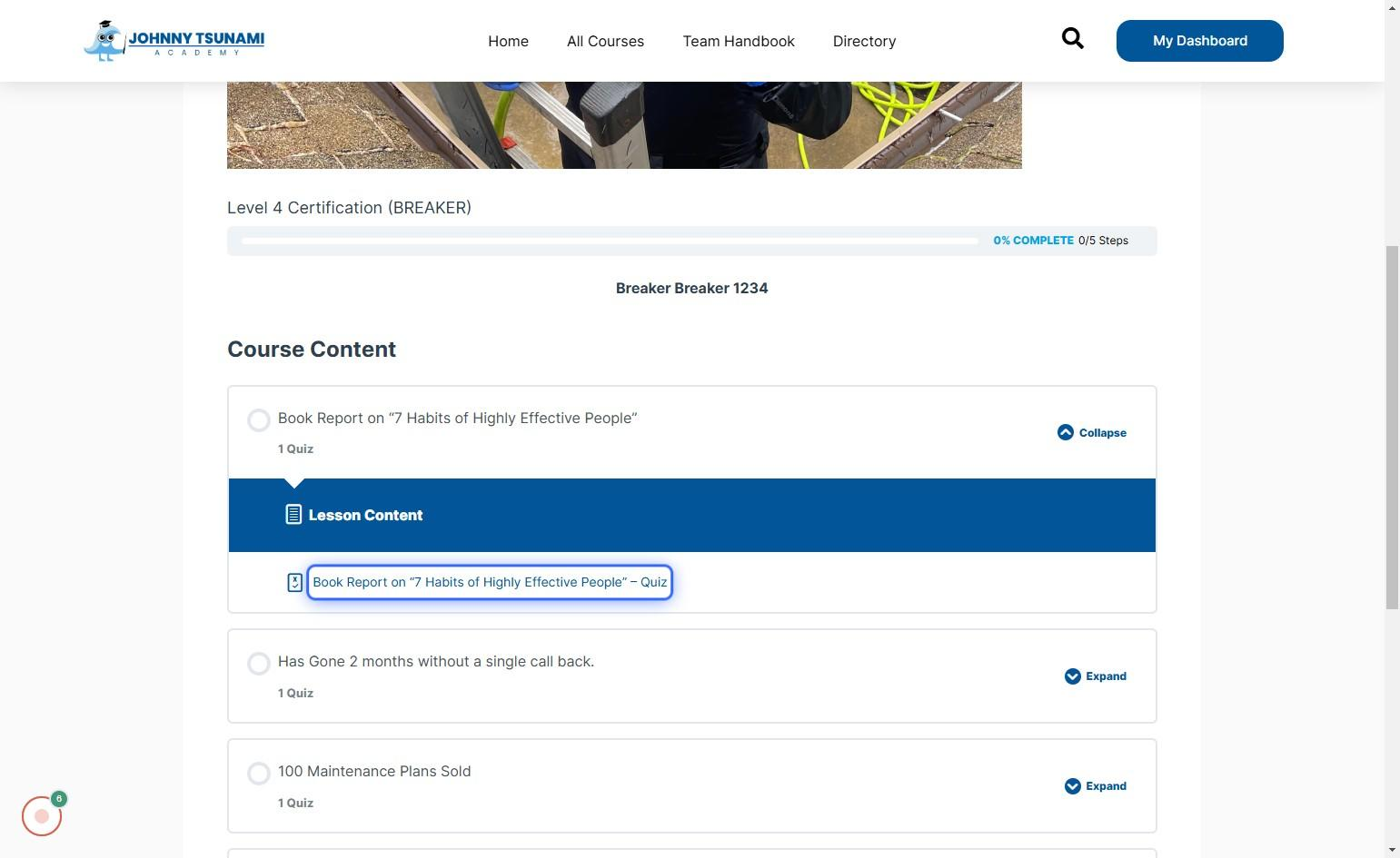 On this lesson page, you can view the content of the lesson you clicked on. On the left, you can navigate to other lessons, and at the top, you can see your progress in the course.