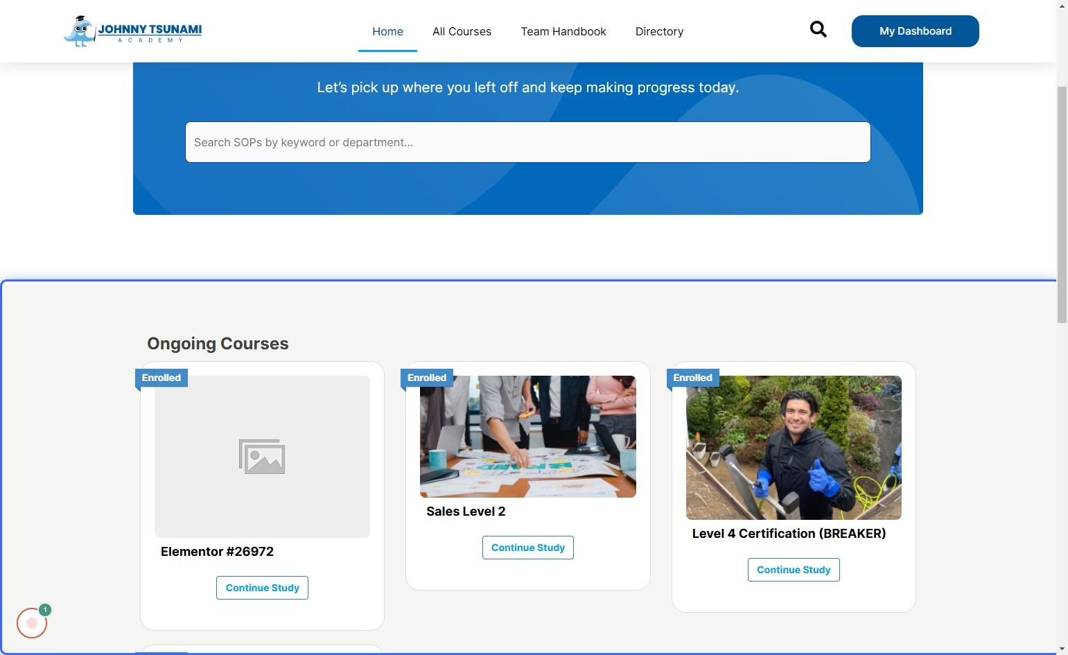 You can also go to the second section of the user homepage to view the ongoing courses.